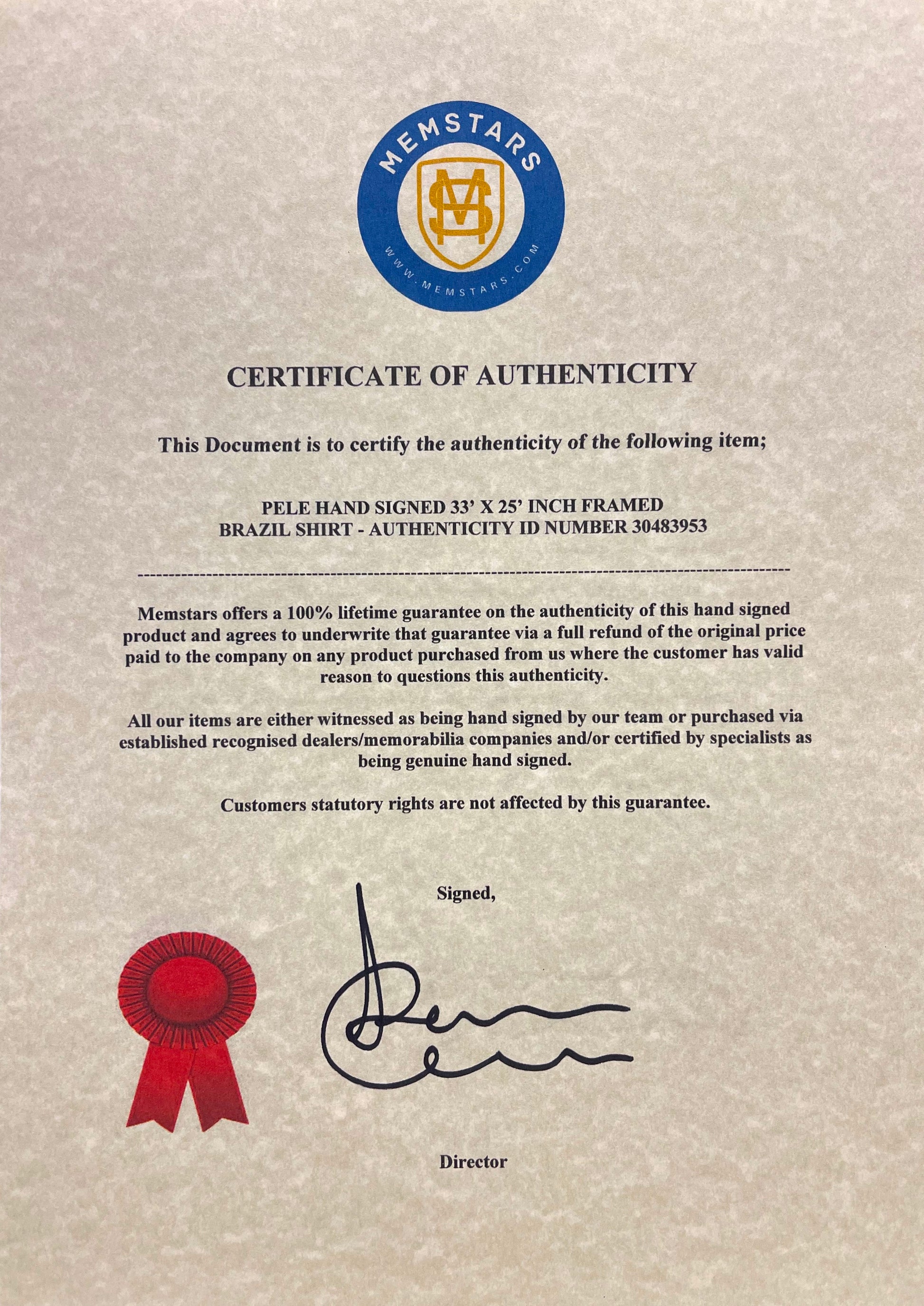 Simply Stunning Pele Hand Signed 1970's Style Brazil Football Shirt in Black Frame (33' x 25') with Hologram and Certificate of Authenticity (COA). A superb example of a hand signed Brazil shirt signed by arguably the greatest player of all time, Pele. Edson Arantes do Nascimento; 23 October 1940 – 29 December 2022), better known by his nickname Pelé was a Brazilian professional footballer who played as a forward. Widely regarded as one of the greatest players of all time, he was among the most successful and popular sports figures of the 20th century. In 1999, he was named Athlete of the Century by the International Olympic Committee (IOC) and was included in the Time list of the 100 most important people of all time. In 2000, Pelé was voted World Player of the Century by the International Football History and statistics (IFFHS) and was one of the two joint winners of the FIFA player of the century. His 1,279 goals in 1,363 games, which includes friendlies, is recognised as a Guinness World Record. This would make the most amazing gift or personal purchase for any office or room in the house. These shirts are becoming ever rarer. Buy with complete and total confidence for the UK's number one poster and memorabilia company with almost 110,000 positive feedback ratings, the highest eBay rating in this category. |