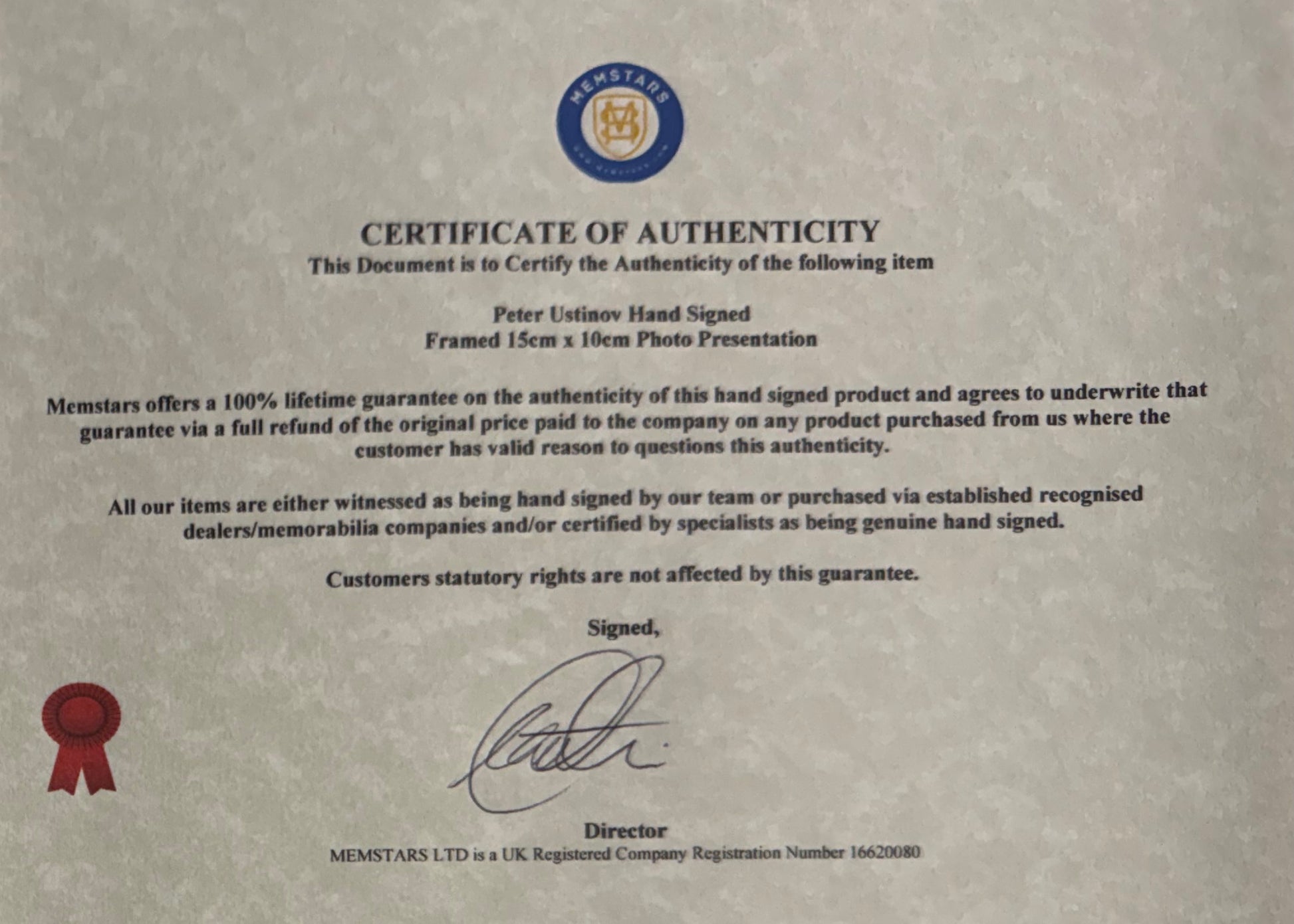 We only sell 100% genuine HAND SIGNED authentic memorabilia with Certificates of Authenticity underwritten by us and/or from AFTAL members.