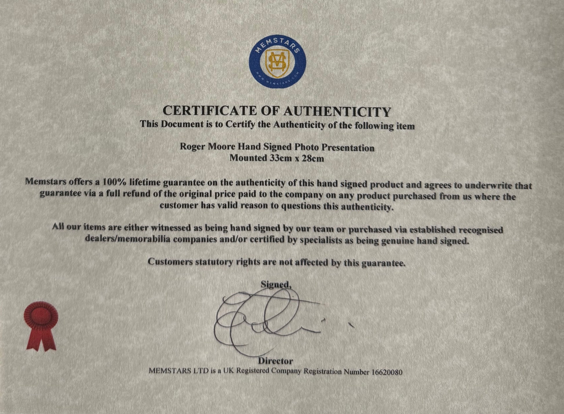 Roger Moore, James Bond 007, 100% Original Genuine Hand Signed Framed (28cm x 33cm) Rare Original Photo - With Certificate of Authenticity (COA).