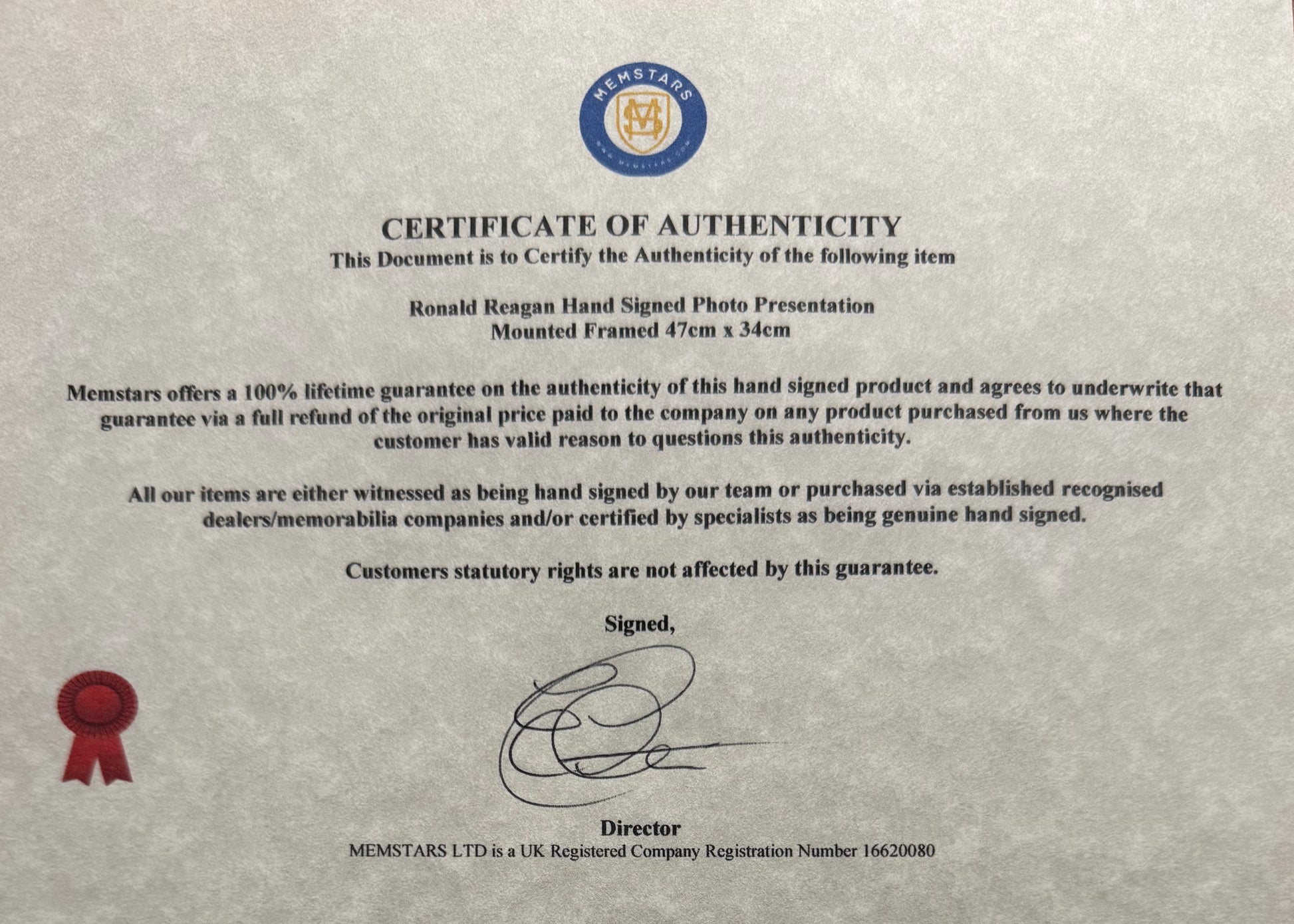 We ONLY sell 100% Guaranteed Hand Signed products certified and underwritten by us and/or registered memorabilia members.