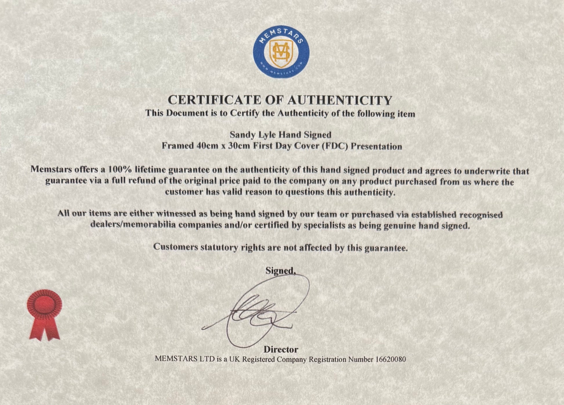 We only sell 100% genuine HAND SIGNED authentic memorabilia with Certificates of Authenticity underwritten by us.