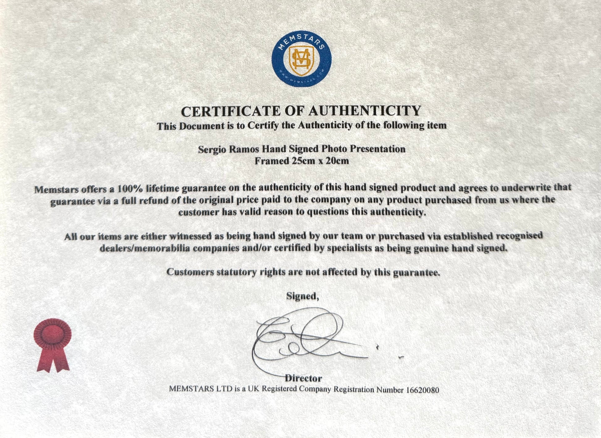 Sergio Ramos, Real Madrid, Spain, PSG Player/Legend - Framed (10" X 8" inch) Genuine, Guaranteed, Hand Signed Photo with COA - Certificate of Authenticity