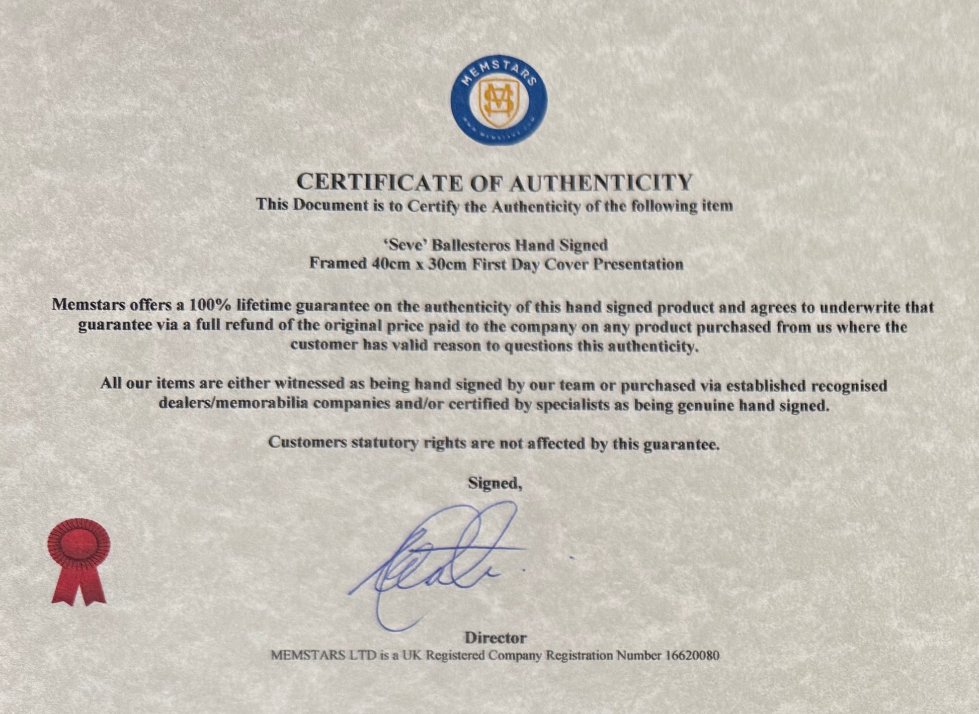 We only sell 100% genuine HAND SIGNED authentic memorabilia with Certificates of Authenticity underwritten by us.