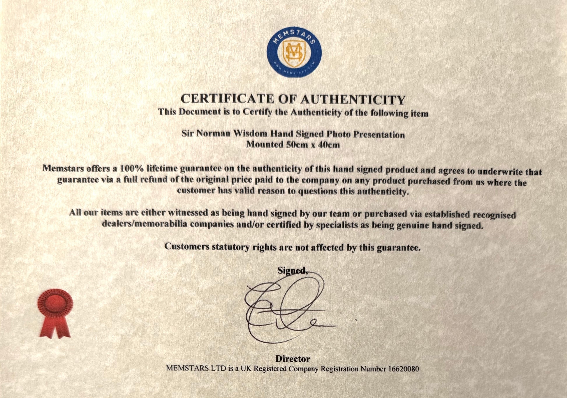 We only sell 100% genuine HAND SIGNED authentic memorabilia with Certificates of Authenticity.