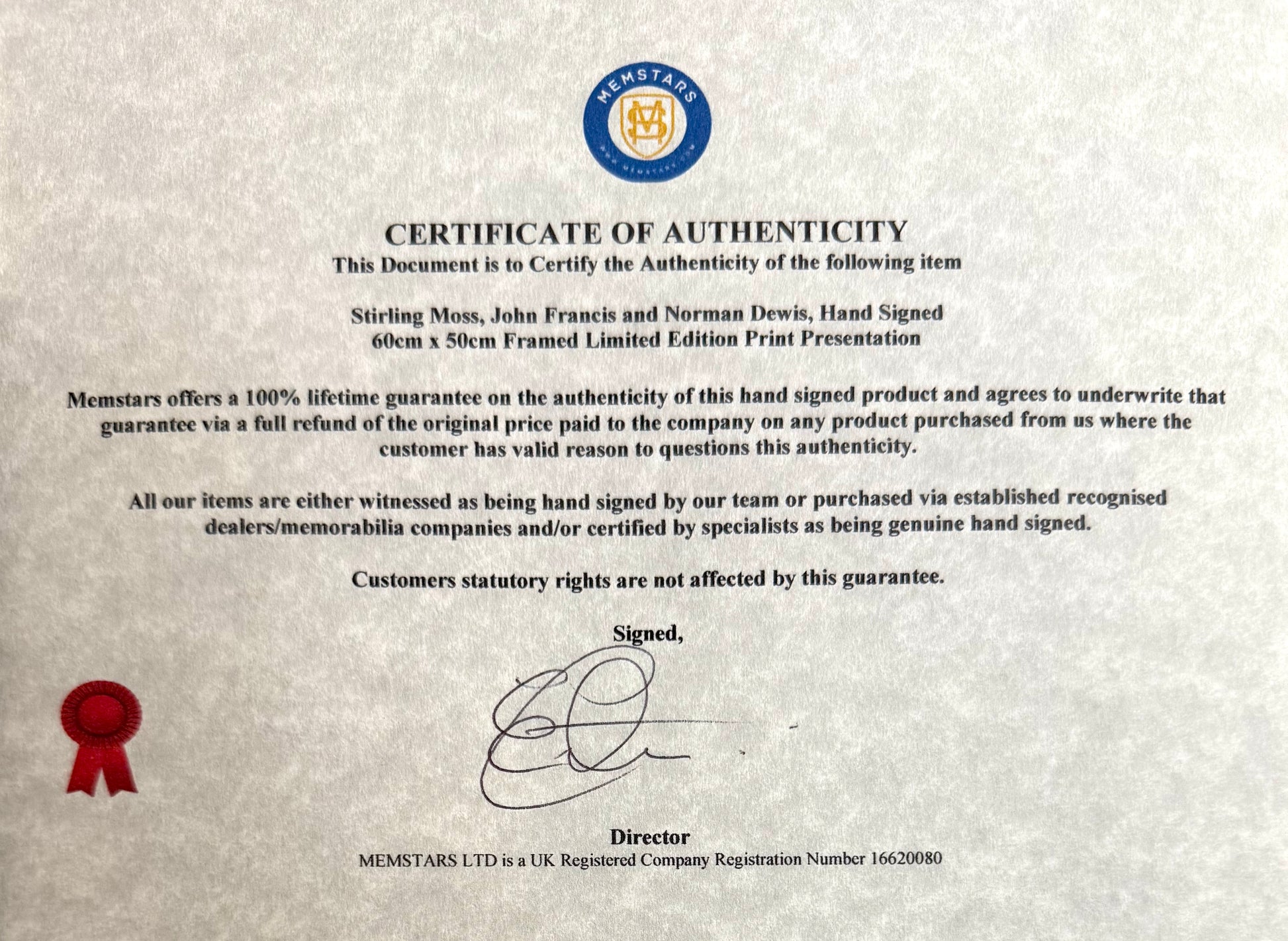 We only sell 100% genuine HAND SIGNED authentic memorabilia with Certificates of Authenticity.