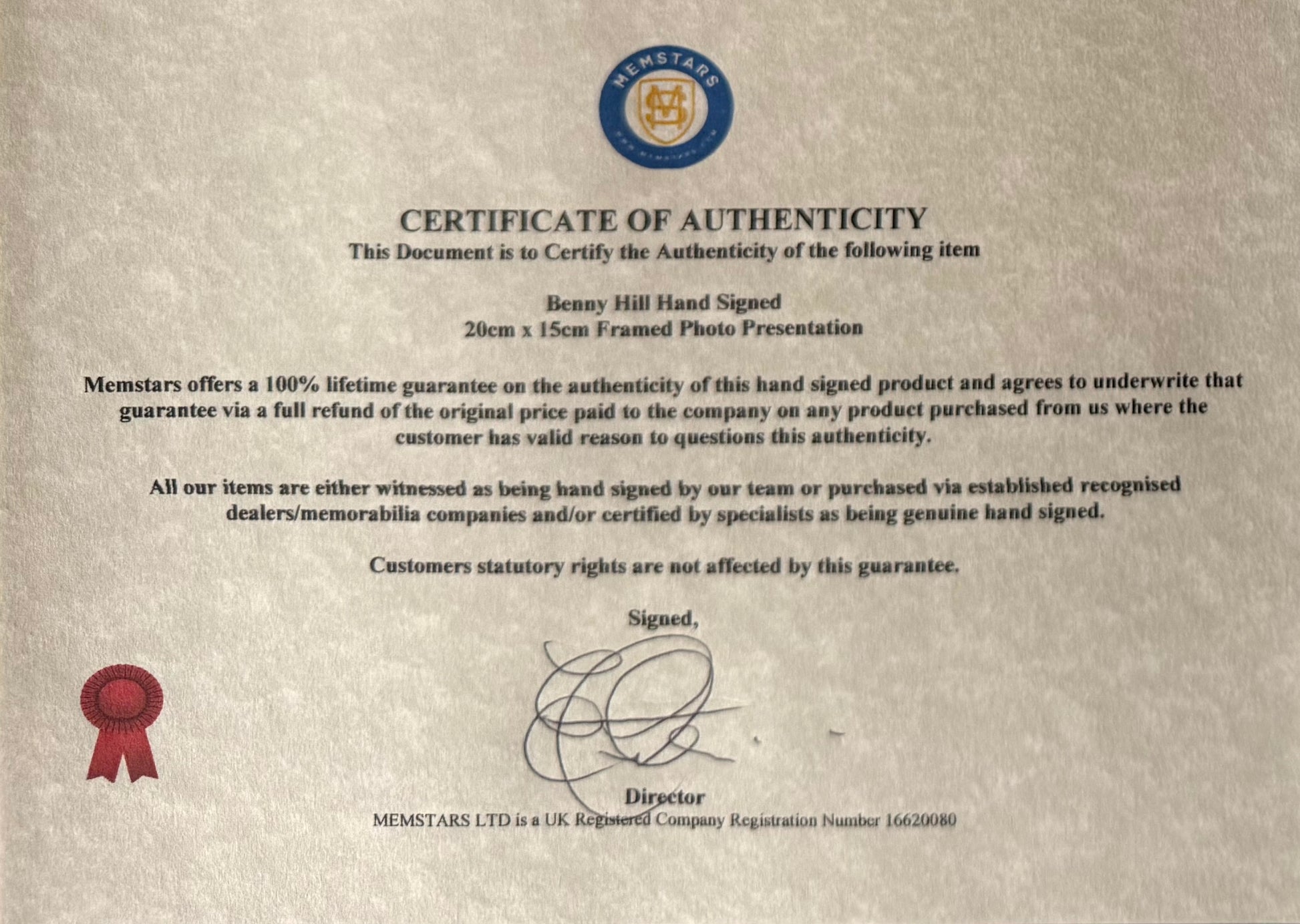 We only sell 100% genuine HAND SIGNED authentic memorabilia with Certificates of Authenticity Guaranteed by us and/or AFTAL Members.