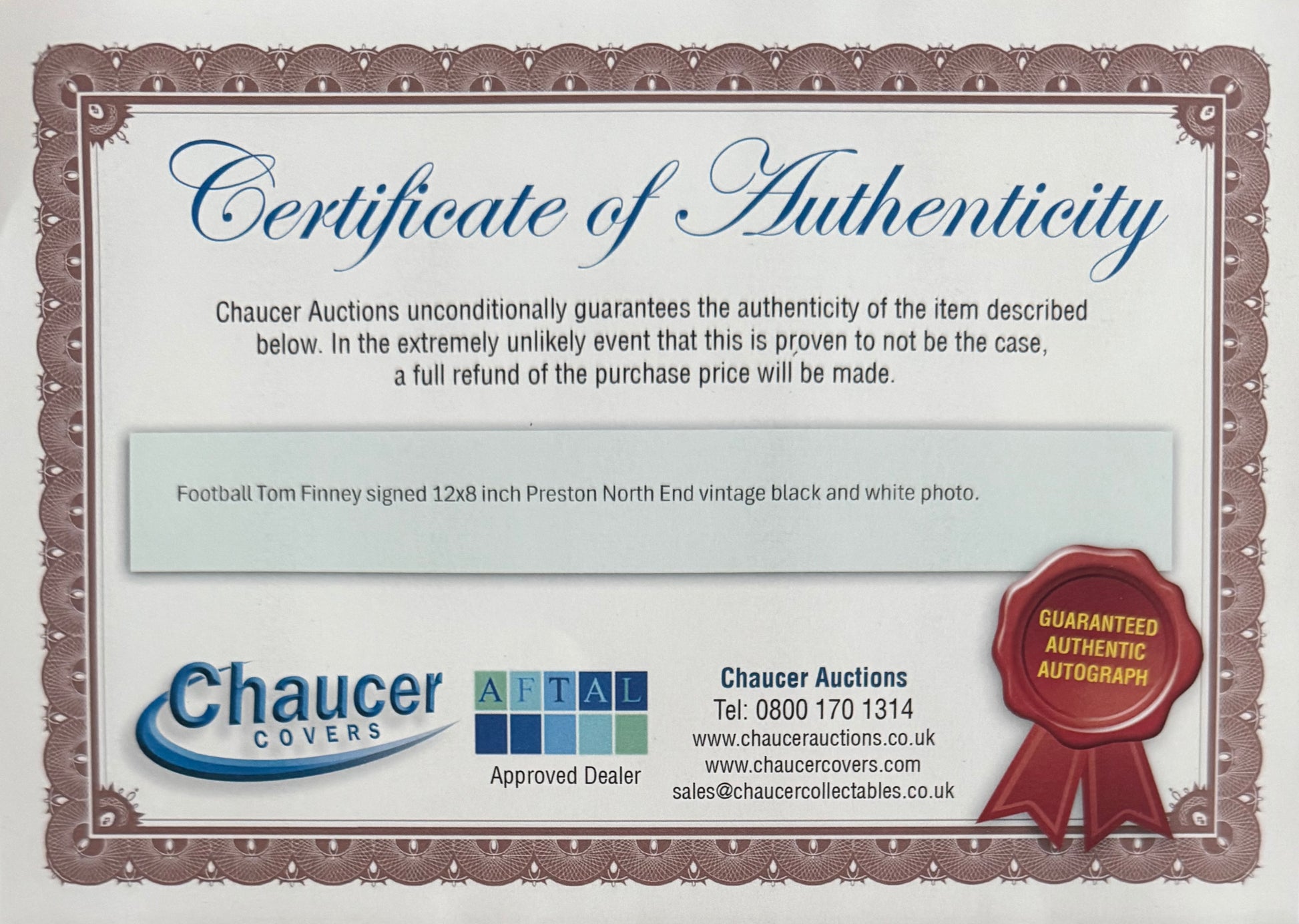 Tom Finney, PNE England Legend, Hand Signed Framed Photo & AFTAL COA