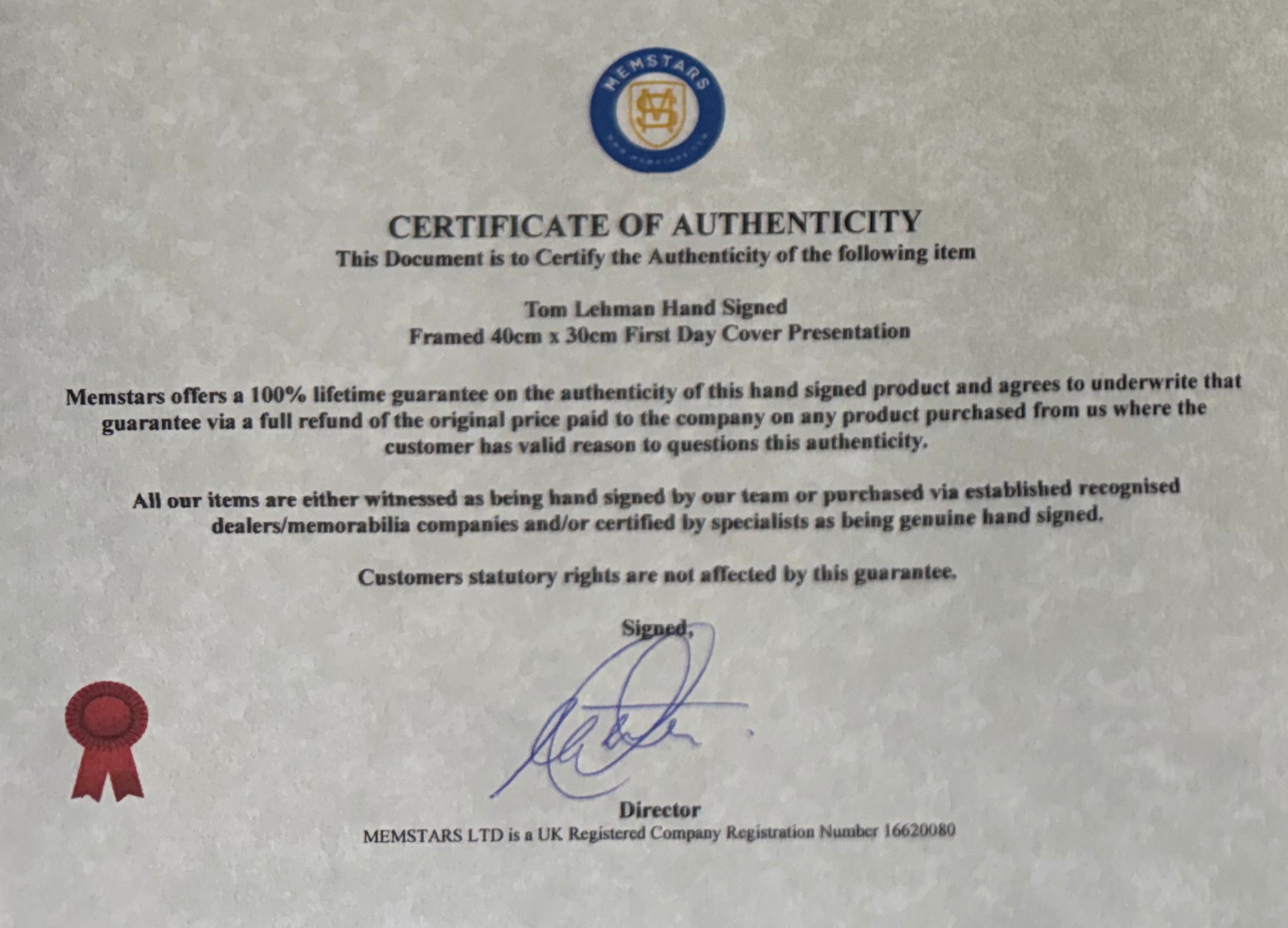 We only sell 100% genuine HAND SIGNED authentic memorabilia with Certificates of Authenticity underwritten by us.