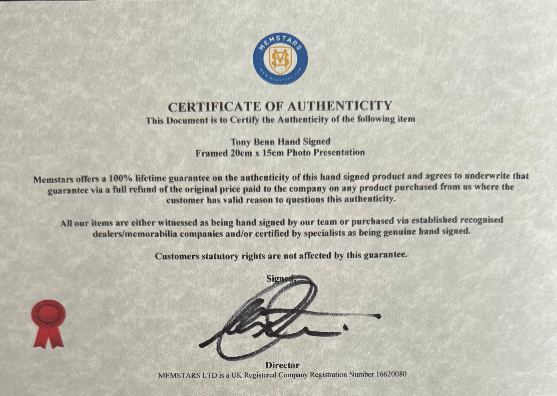 We only sell 100% genuine HAND SIGNED authentic memorabilia with Certificates of Authenticity from us and/or AFTAL members.