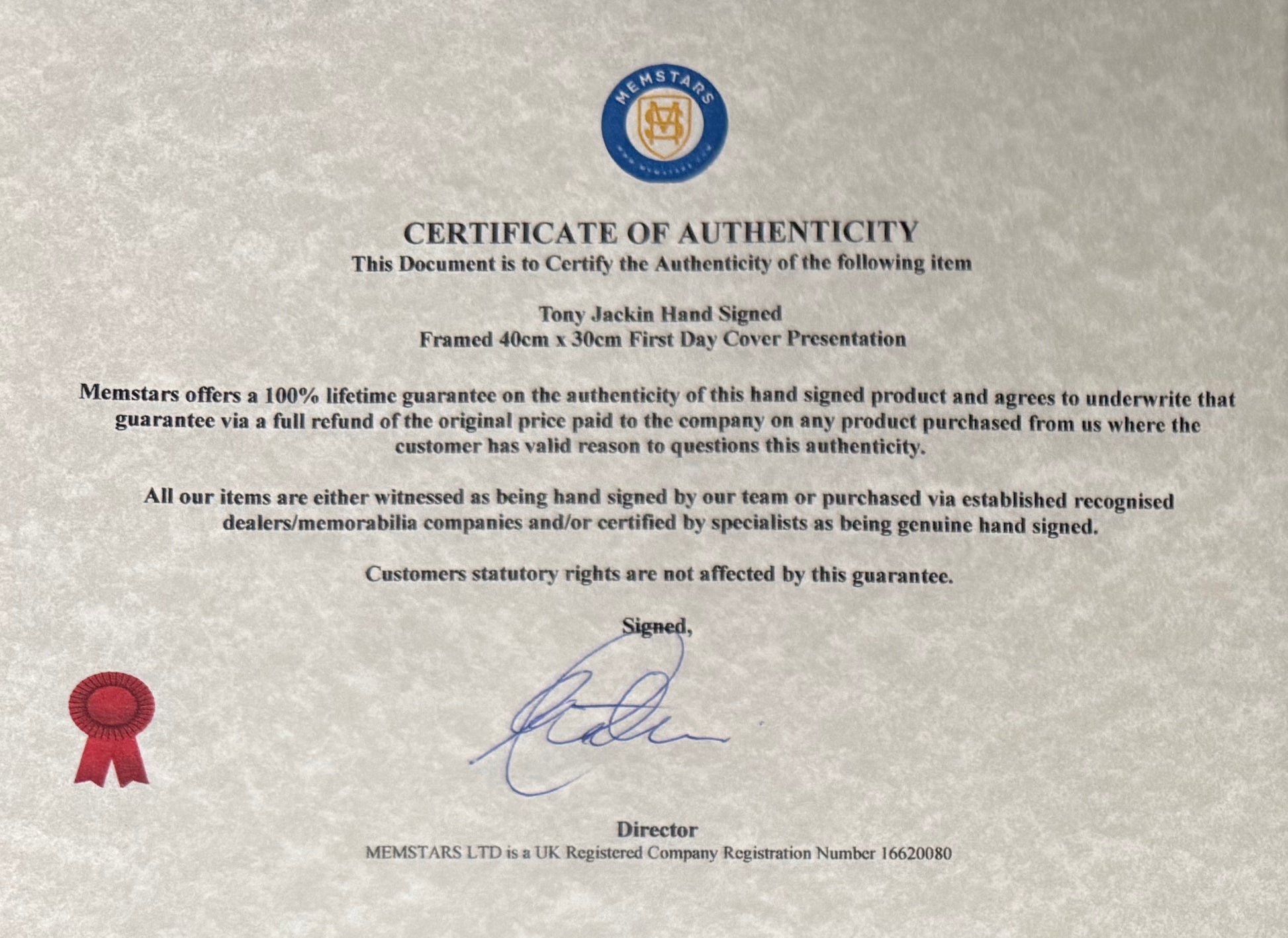We only sell 100% genuine HAND SIGNED authentic memorabilia with Certificates of Authenticity underwritten by us.