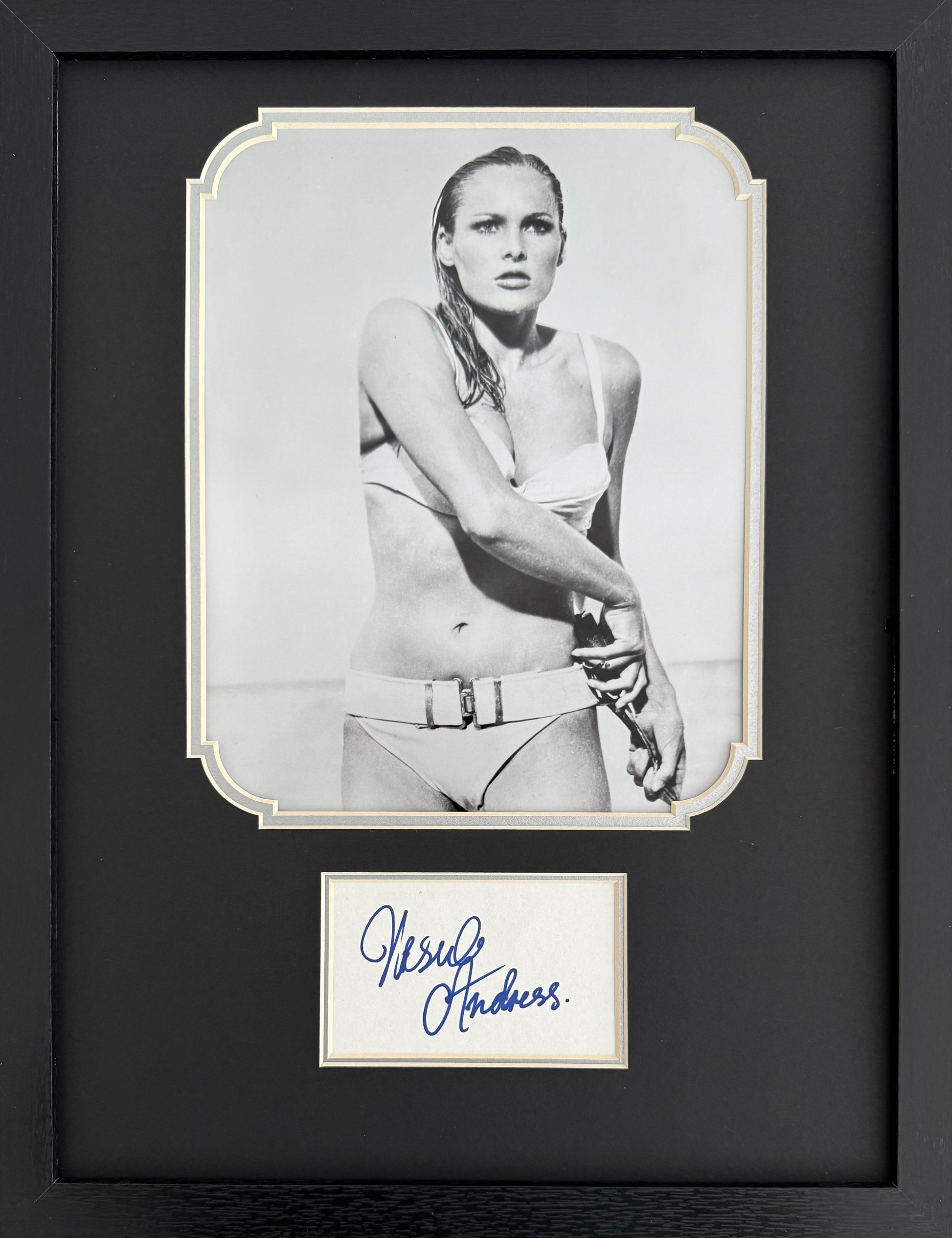 Stunning Genuine 100% Guaranteed Hand Signed Ursula Andress (Dr No, Honey Ryder) Card with Photo Presentation - & COA - Certificate Of Authenticity. Framed 40cm x 30cm