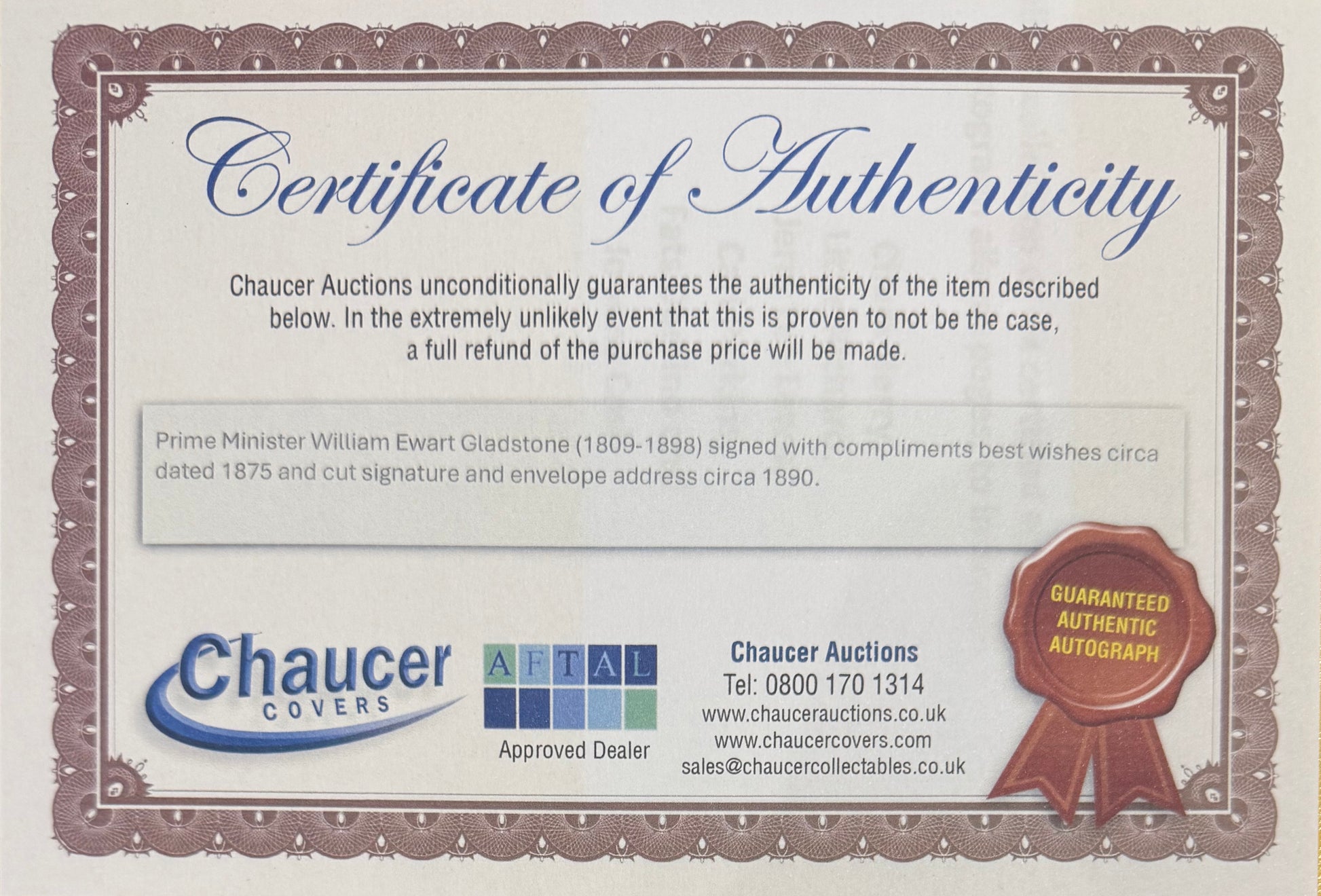 William Gladstone, Former British Prime Minister, Hand Signed Envelope Presentation & AFTAL COA
