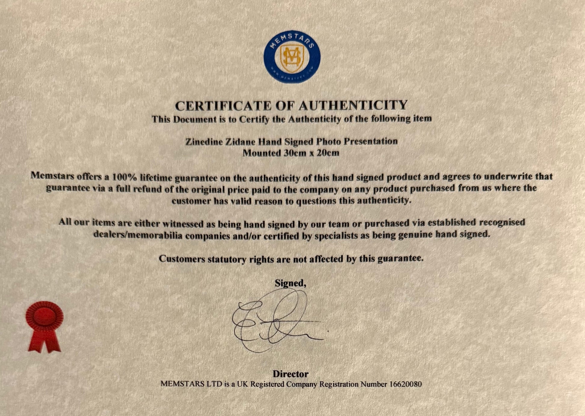 We ONLY sell signed items that are 100% Guaranteed as being hand signed and are certificated by us and/or AFTAL members.